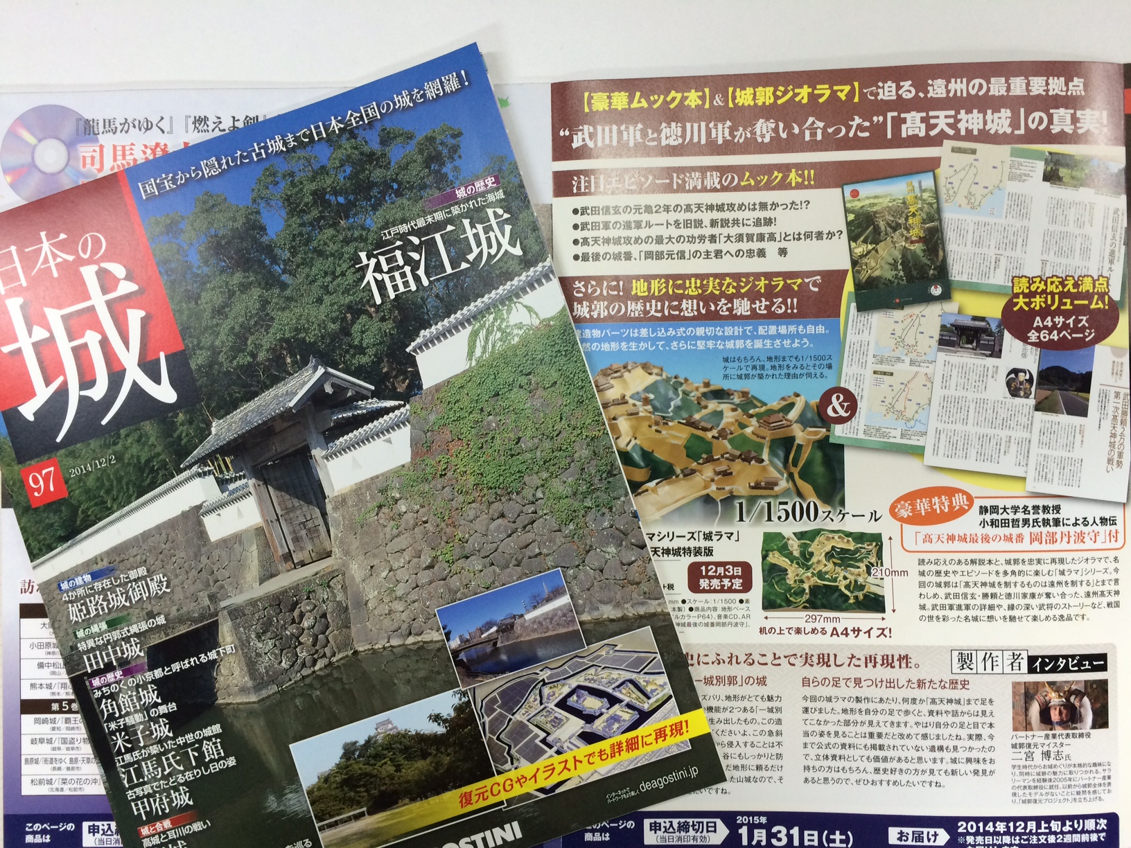 デアゴスティーニさんの週刊日本の城はとても見やすく内容も充実していて、しかもお求めやすい本で、私もちょくちょく買っています。