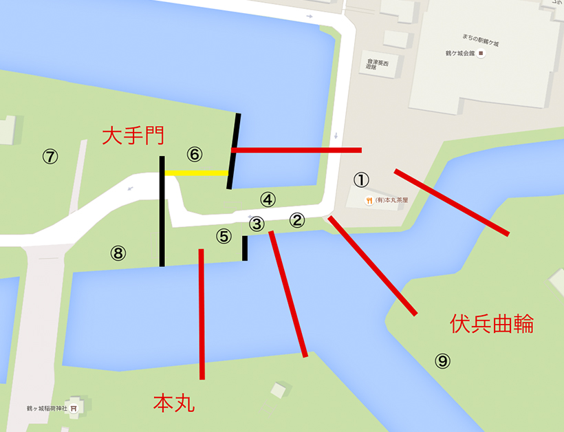 しかし、当時の会津城守備隊の数が極端に少なくなっており伏兵曲輪に守備兵を配置した可能性は少ない。